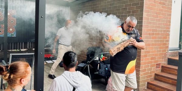 Peer Worker Raymond (Bubbly) completing a smoking ceremony