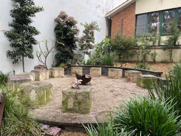 The Yarning Circle was created to provide a meeting place for all people. The space carries the spirit of First Nations culture, connection to country, reconciliation and healing. The garden is also a celebration of First Nations peoples contribution to the local area. It is our welcome to First Nations men who come to stay at Rainbow Lodge from all over NSW and across Australia. The garden is used as a learning space and groups are regularly held here.